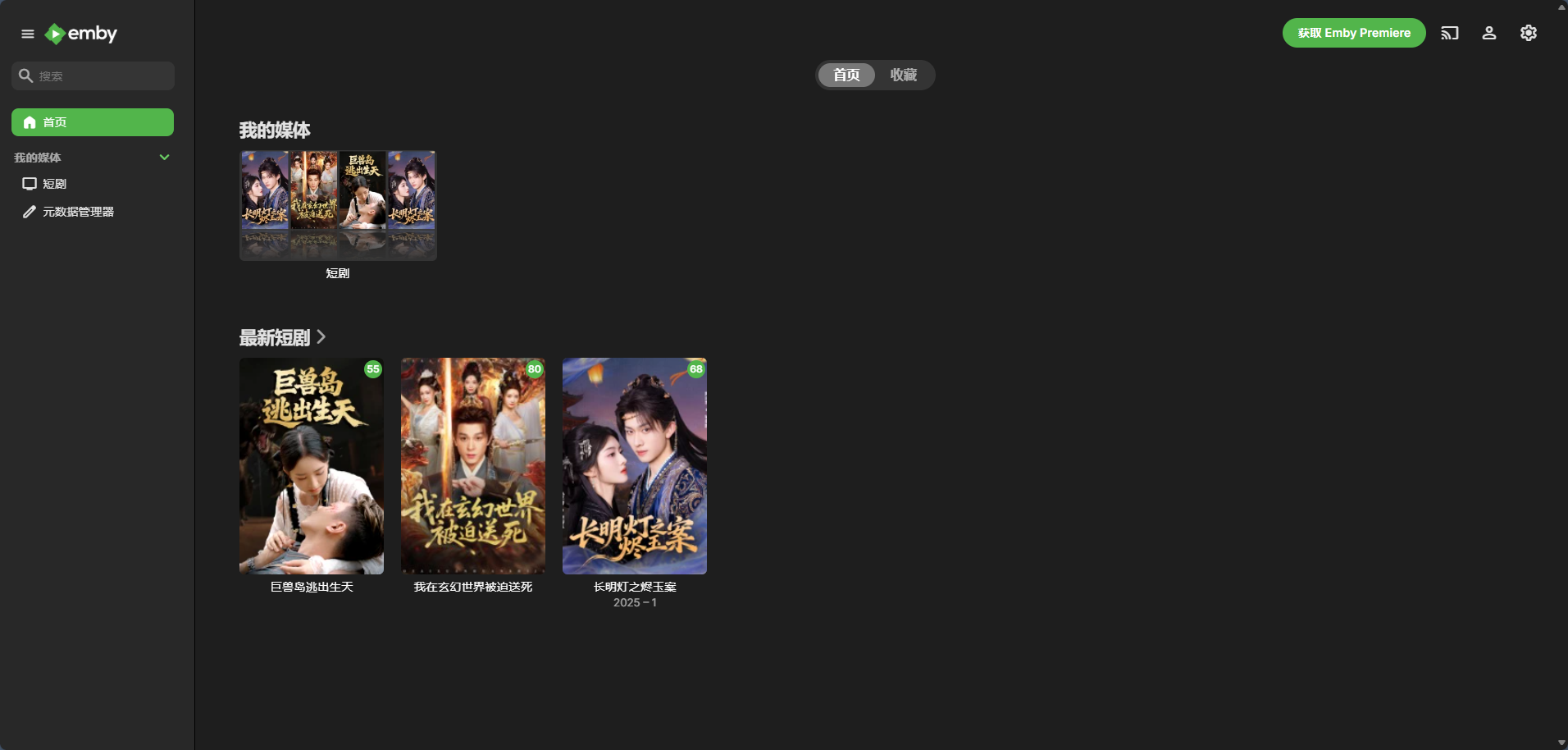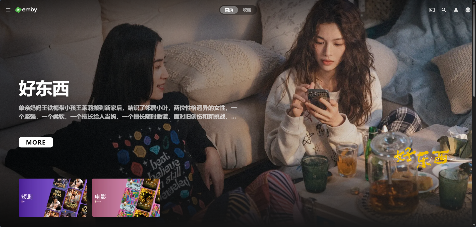 跳转到登录界面,输入刚才注册的帐号和密码就可以进入 Emby 的主界面了