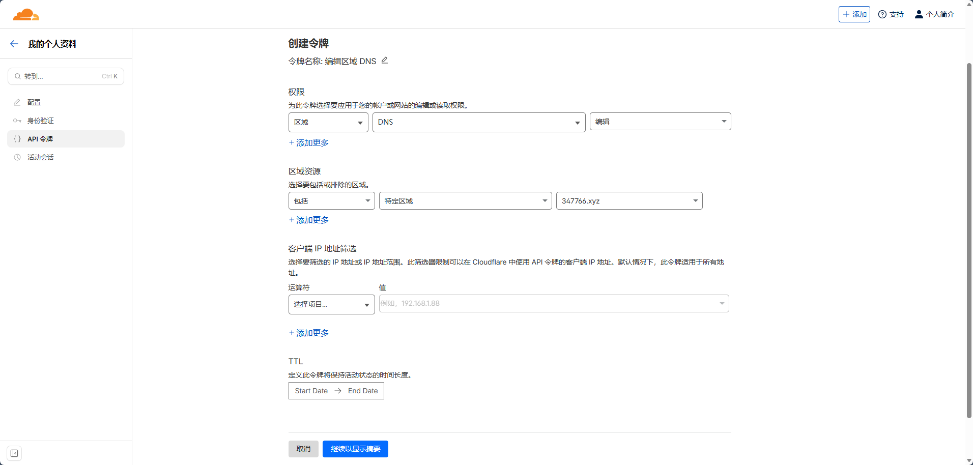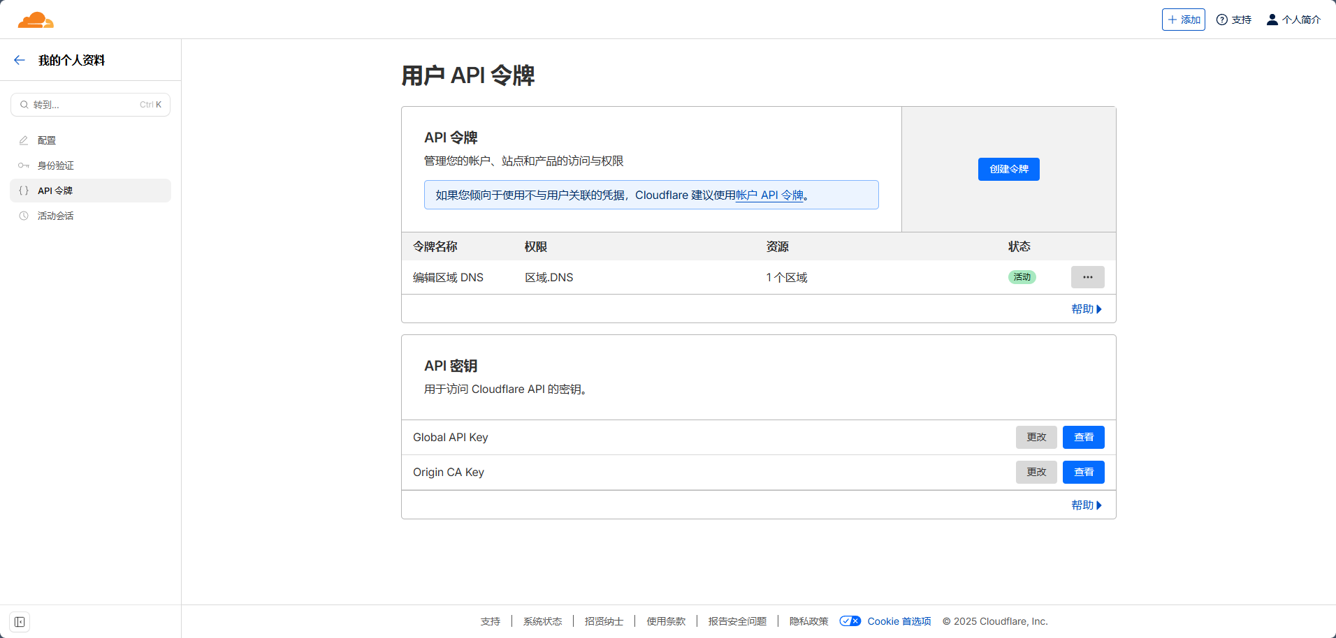我们点击链接登录“Cloudflare”后,跳转到令牌窗口,点击“创建令牌”