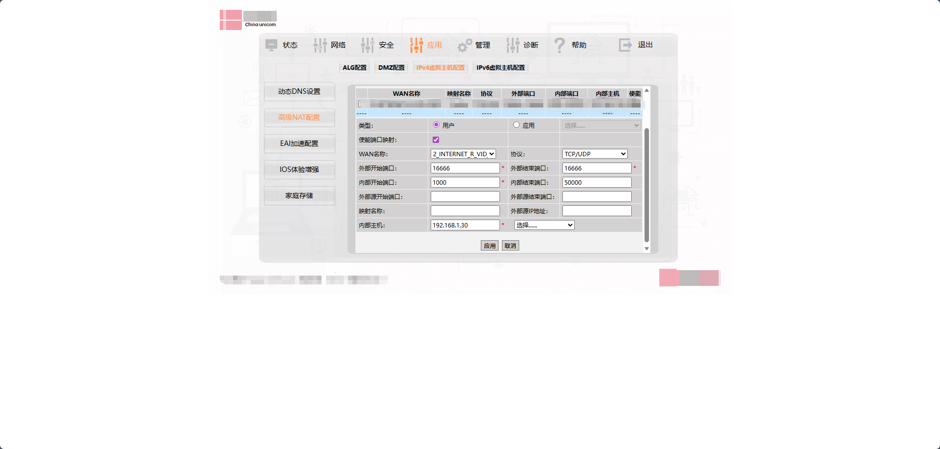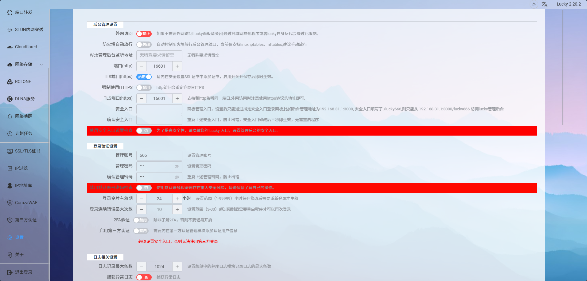 随后来到上级路由器或光猫中开放 16666 端口,来让 Lucky 发送和接受数据(注:自身路由器或光猫不同设置各有差异,请关闭防火墙或放到最低权限,否则可能无法访问)