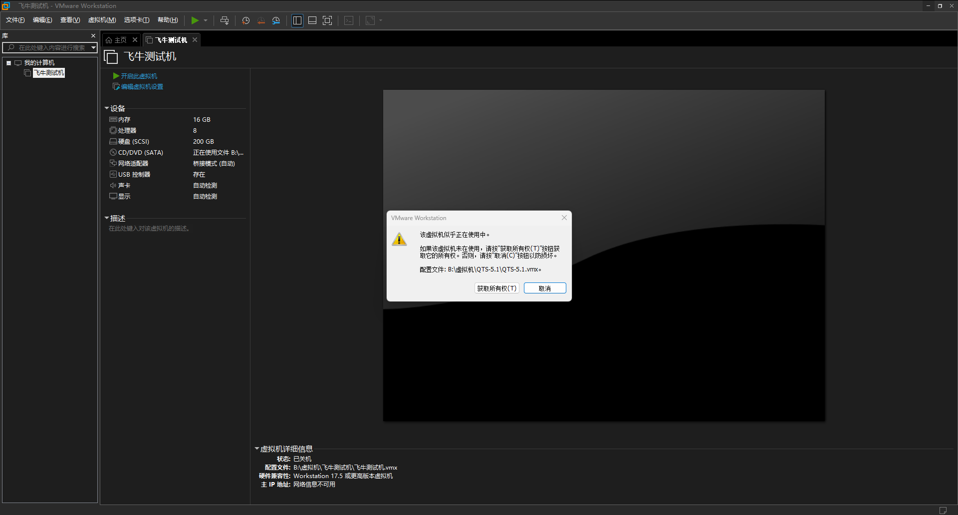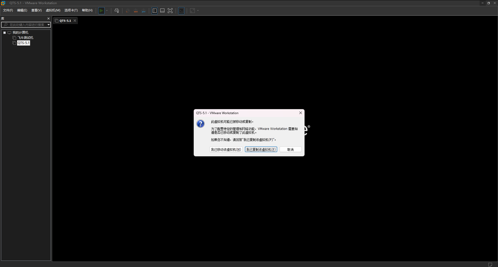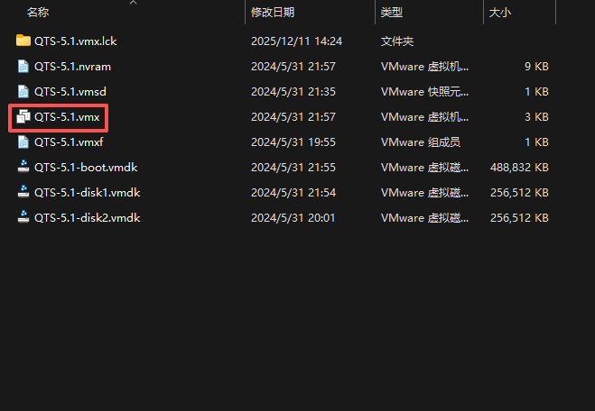 用“VMware”打开,下载好的虚拟机镜像“QTS-5.1.vmx文件”